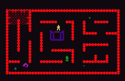 – Night Stalker: This was a Pac-man style maze, there were no dots to be eaten; you just wandered around while alien dudes tried to shoot you. This could have been a much cooler game if it had more levels or mazes, but we’re talking about 4K of RAM here.