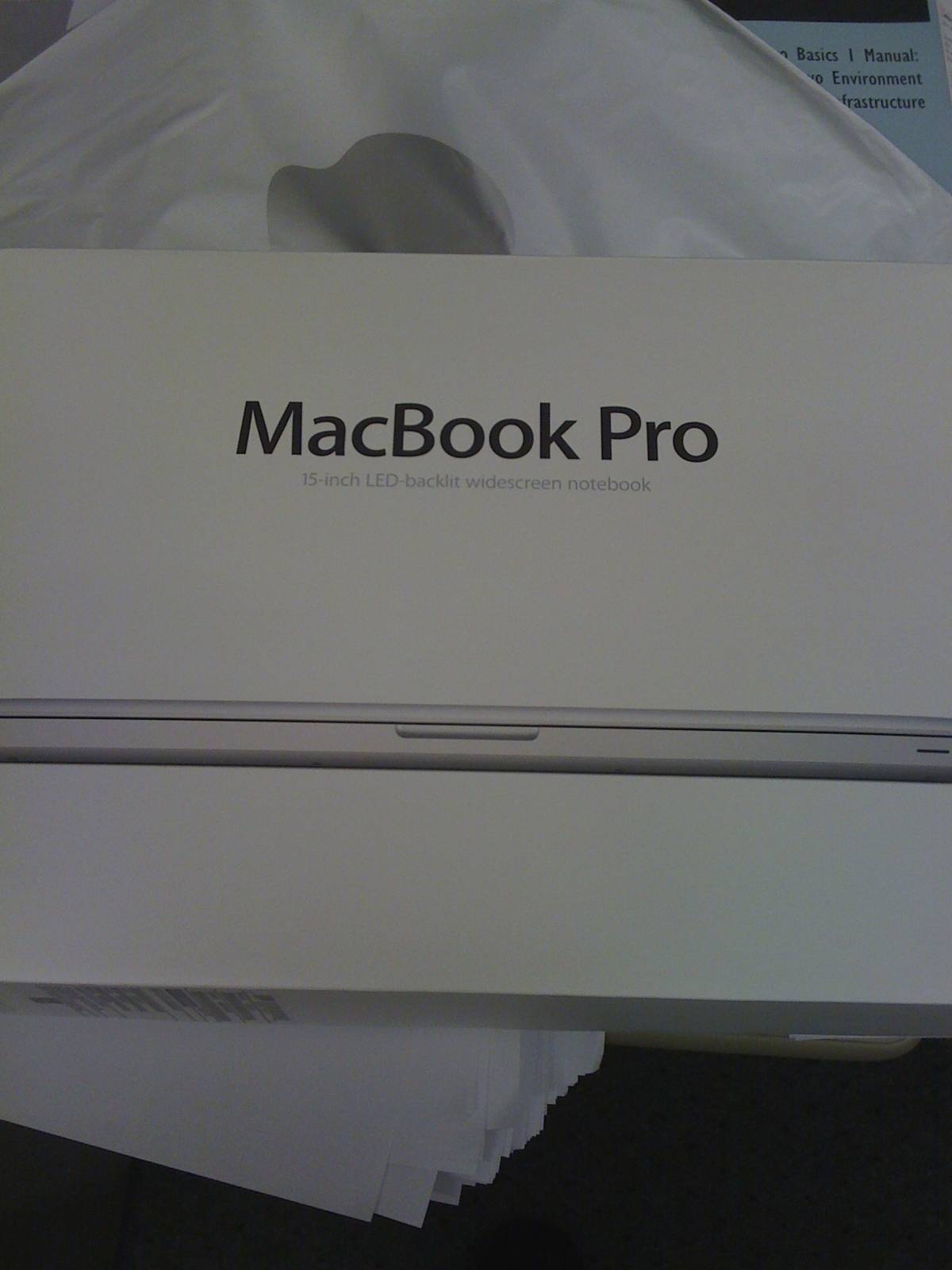 I drove to the Apple store in Palo Alto on my lunch hour to buy the computer. They had them in stock, and $2500 later, I had the top-of-the-line 15-inch MacBook Pro. I took it back to my cube, unboxed it, snapped photos, and took a quick look. Then it sat on my desk while I stared at it, waiting until the end of my shift for my long commute back to the house. Then I plugged it into my old Mac, and did the eternal wait for the migration assistant to slowly slurp all of the files from one hard drive to another.
