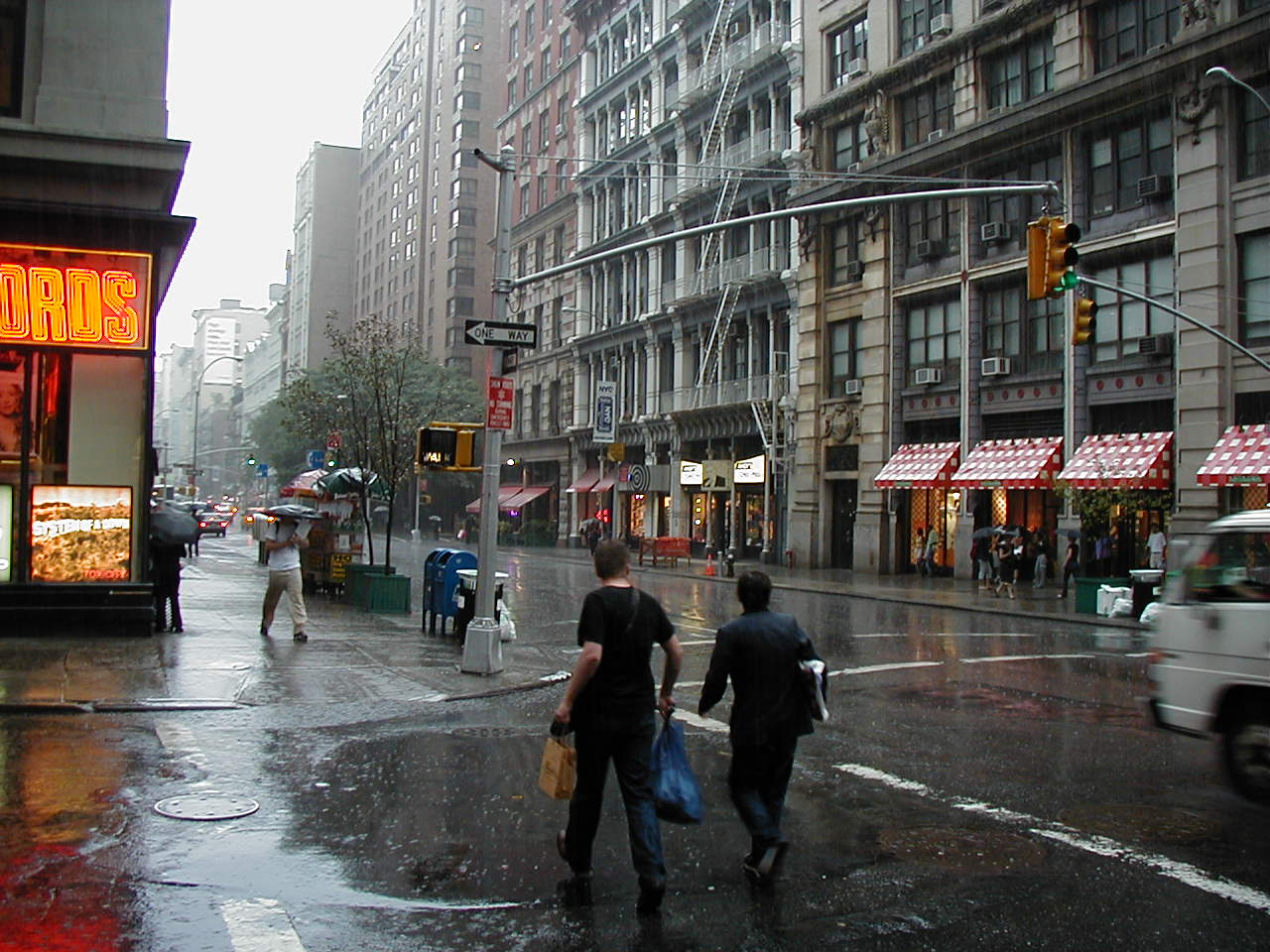 Tuesday morning: my dress shoes were warped and damp and completely unwearable, but I put them on anyway. I only needed to walk to the train station, then I could take them off and let them dry. My bag was still wet. I threw out the pulpy Rumored draft, and decided to leave behind my digital camera. I always brought it to snap pictures of New York streets, but I figured I wouldn’t miss anything if I left it home for a day.