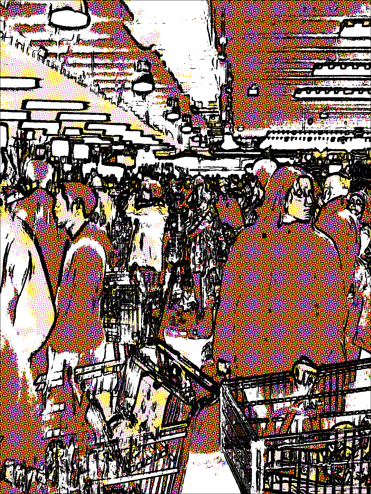 The whole store was so depressing, for some unexplainable reason. Store designers spend untold sums doing subtle things to layout and placement to hypnotize consumers in optimal ways to buy more stuff or feel more comfortable or set the mood. You don’t notice it, but if you’ve ever worked in a department store and you’ve spent time after hours during a massive store reset, when pieces are scattered everywhere and the kayfabe has been dropped, you know the deal. Something didn’t look right, and it wasn’t just the hoarders digging through the out-of-date celebrity cookbooks, looking for a deal. Half of the entrances were boarded up already, covered with giant vinyl banners advertising the fact that everything but the fillings in the cashier’s teeth had to go. And something about the lighting, the vacancies in shelves, the massive numbers of books in the wrong place, faces out – it made me feel overwhelmingly depressed that this place would soon be yet another vacant storefront.
