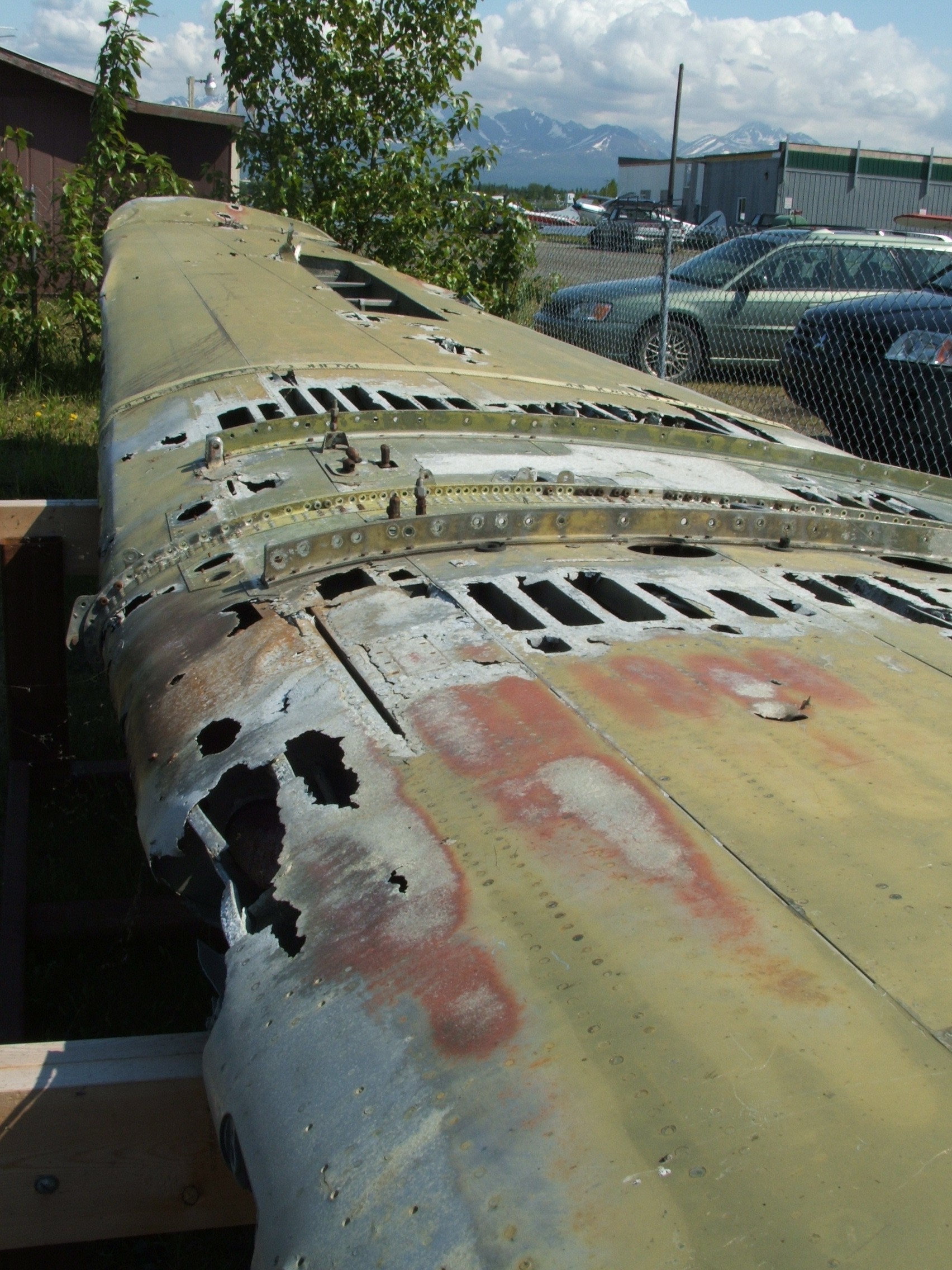 Beyond the military surplus was this third tier of the absolutely beaten and fucked pieces of crashed planes. I think they had a noble idea, taking in this potentially rare and impossible to find collector planes, things that maybe the Confederate Air Force and some rich Branson-type guy had the only two in existence, and here’s 26 percent of one that flew into a mountain in 1947 and was left to rust, except maybe it was encased in some bizarre combination of blue ice and no acid rain that left some of the galvanized or alloy pieces intact. But this organization had zero money, maybe a couple of senior volunteers that swept the floor and could put a coat of latex house paint on top of the ruined carcasses. They probably had a small population of retired Air Force guys who did know the proper way to fix up one of these planes, and maybe they were lucky enough to get a few hours of patriotic service out of them. But there were also enough working retired aircraft still making hops across the Alaska terrain that needed the TLC from a trained mechanic to keep the tourists in the air or to get raw supplies or medical aid to people up in Fairbanks or Nome or the upper pipeline.