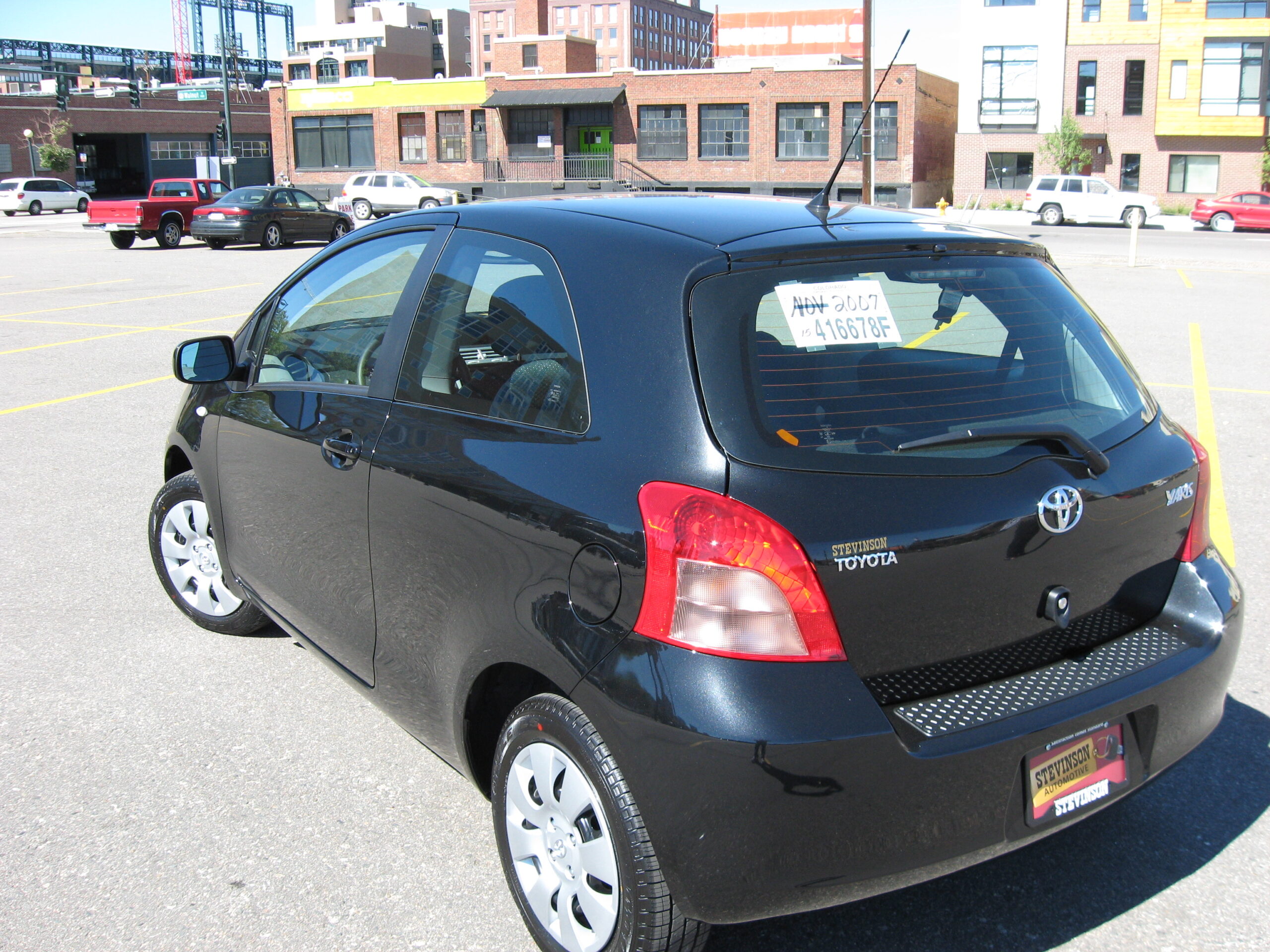 I bought the car in 2007, a month before getting married, and the weekend before I started my new job at MX Logic. We had one car, the Subaru, and Sarah worked right across the street, so the original plan was for me to drive down to the Denver Tech Center every day in the Outback. But she always had off-site meetings, trips to the airport, doctor appointments, and other things that would require a car. So the plan was to buy the cheapest new car we could as a backup, and we looked at the lowest-end Toyotas and Hondas before ending up test-driving the Yaris, and deciding to go with that. Sarah had financed the Subaru, so I financed this car. And then I started driving the Toyota to work every day, and although in finance it was already my car, it became “my” car.