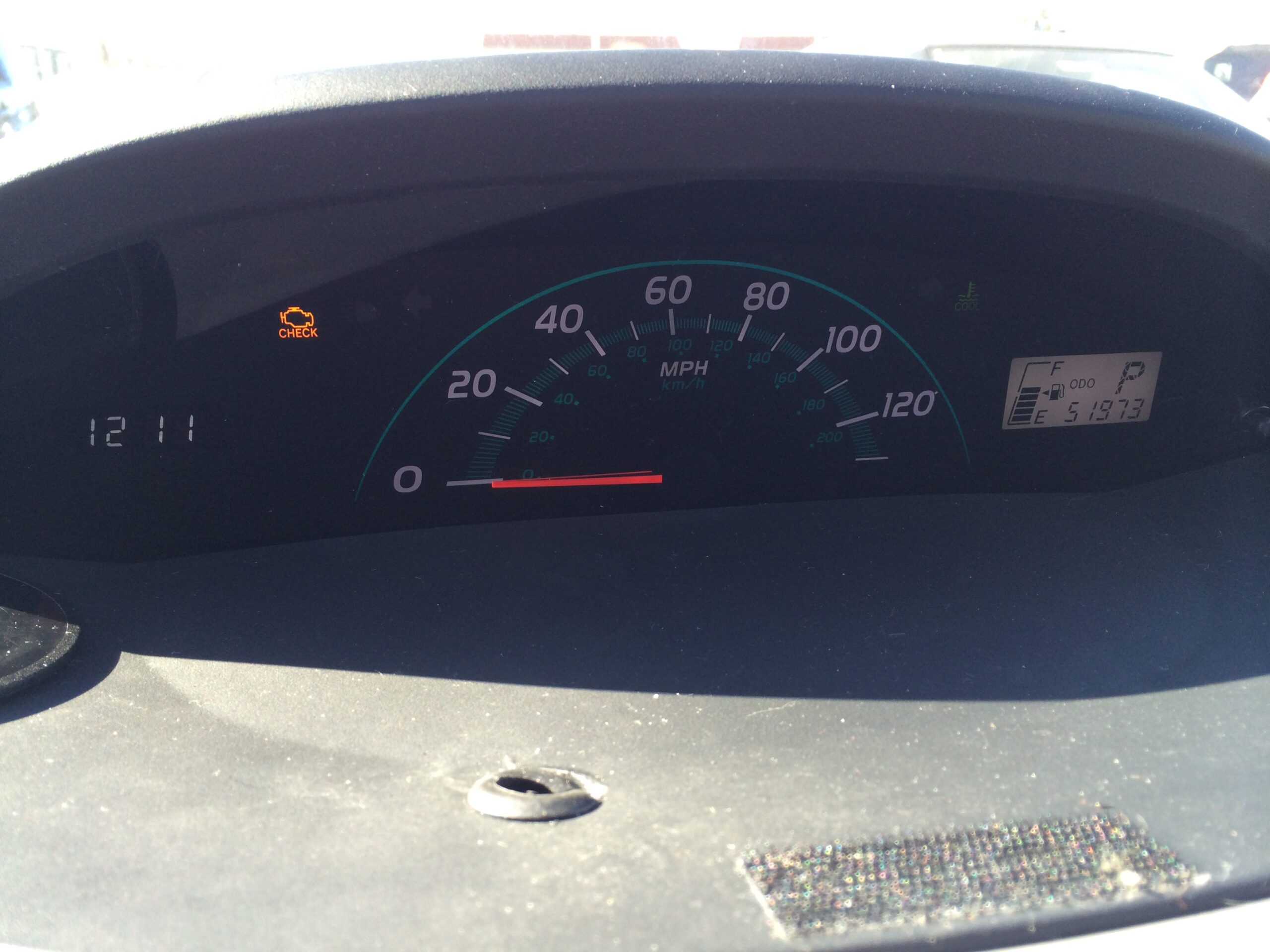 In 2009, on Good Friday, I was driving in stop-and-go traffic in the rain on 237, and at about 35 miles an hour, I glanced in my blind spot to change lanes. When I looked back up, the car in front of me was at a dead stop, and it was too late for me to do anything but lock the brakes. My car hit a truck, at an angle, the nose diving just under his bumper. The airbags did not deploy and I hit the steering wheel hard enough to not know what happened for the next minute or so. The car wouldn’t start, and when I got out, the front end was fucked. I got a truck to push the car off the road, and after an hour or so, got flat-bedded to a body shop. I did not know the fate of the car for a weekend, and became insanely depressed over the outcome. It was a coin toss as to whether or not the car would be totaled, and I felt so close to the vehicle, I was really sad to let go of it. They came back and said they’d repair the damage, and within a few weeks, I had the car back, good as new. (Or so I thought.) It took a while, but I got my old friend back, looking as good as new, with a new paint job and Toyota-certified sheet metal and plastic pieces bolted onto the front end. I was very happy to have her back, and it made that insufferable commute to San Jose almost bearable, at least until that novelty wore off.