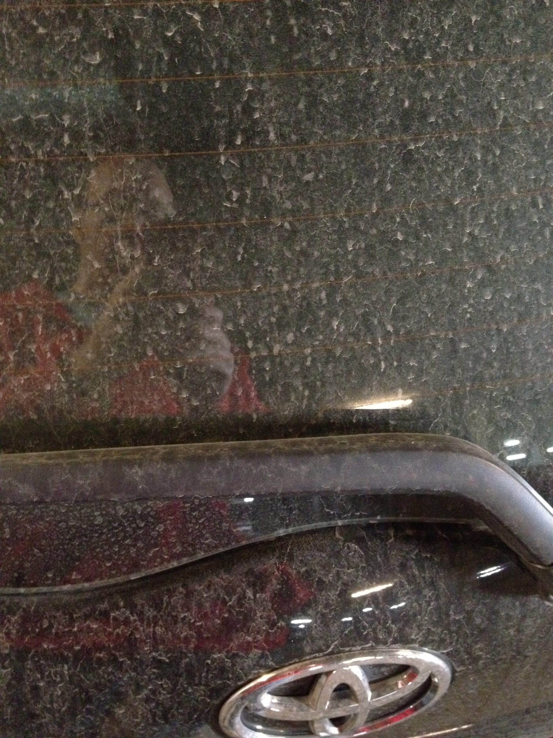 I see an unmarked cop car, black tinted windows, speed up Broadway the wrong way, sirens blazing, lights on. It’s covered in about three inches of powdery grey dust. It looks like the dust you used to see in Mt. St. Helen’s footage in the 80s.