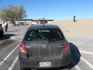 Within six months, Sarah’s job fell apart, and we set our sights on Los Angeles. I quit my job, and while she worked, I drove ahead to LA to scout for apartments and haul out a small load of essential things we could have while our house was in transit with the movers. The solo drive halfway across the country took some work, because that tiny engine really struggled going over the Rockies. But I had my new TomTom GPS on the dash, my tunes in that AUX jack, and six cup holders, no waiting. The car got covered in salt and dirt, after crossing the snowy mountains and then the desert, spending a night in Las Vegas, and then hitting the streets of Culver City as I apartment hunted. I drove all over the City of Angels looking for a place for us to live, and then picked up Sarah at LAX so we could sign the papers at our new home in Playa Del Rey and then go back to Denver to pack. I left the Yaris there at the new apartment, filled with dishes and housewares, to wait a few weeks until we’d come back.