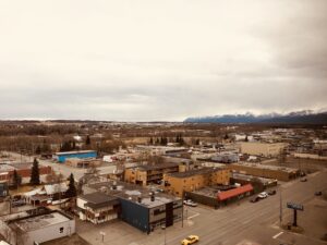 I dumped the car and luggage, then set out on foot to find something to eat. Anchorage has a downtown — there are normally about 300,000 people here. Most of downtown is small one and two story sprawl — you have to keep in mind the entire city was pretty much leveled in 1964. There are a dozen or so buildings taller than ten stories, almost all hotels, with I think a bank or an oil company of mirrored glass, the kind of early 80s office space you see appear when the crude starts flowing. But downtown is a lot of buildings that sort of appeared because of tourism or seasonal work at fisheries and oil fields. And it has the same density and feel as a city like South Bend, but maybe three times bigger.