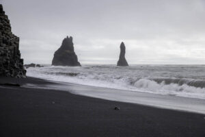 - Reynisfjara is a black beach on the Atlantic. It was absolutely stunning and completely surreal. Black sand, black shores, black rocks, black mountains, gray waves that looked gigantic, coming straight from Antarctica across the world and hitting shore, creating this cold mist and fog everywhere. It did not look real, at all.