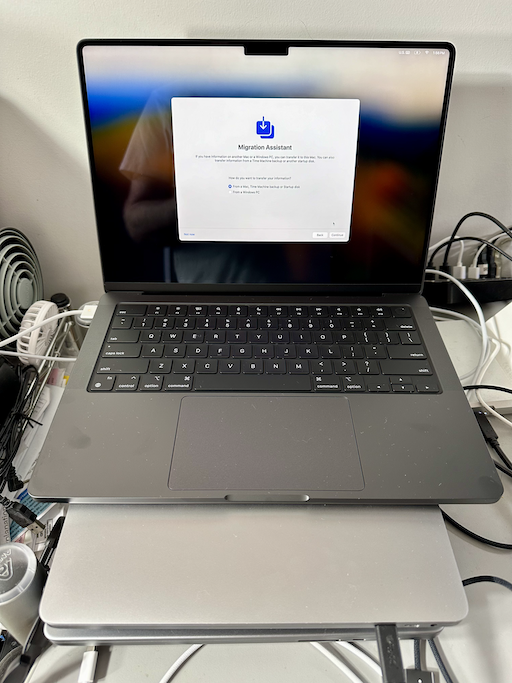 I’ve wanted to update this 2020 Mac for a while, but also didn’t want to, because it’s an Intel, and I don’t know what software on this machine requires an Intel processor. I know VMWare does, but I haven’t used VMWare in forever. It seems like every time I fire it up, they’ve upgraded a major version and mine doesn’t work anymore and I have to give them another hundred dollars. Meanwhile at work, I’ve been on Apple Silicon for a year and a half with no problems and a decent speed increase. And the 2020 has been slowly aging out. Firing up Photoshop or Lightroom almost always kicks in the fans, and even basic Safari usage is getting pretty sluggish. So I’ve wanted to make the switch, but I keep dragging it out. But with a huge negative balance on my Amex and a week of staycation where I’ll be confined to my office, it felt like now was the time.