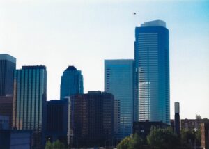 Castle got BRACed in 95, but you can still see the remnants of the old SAC base: a giant parade ground in the middle; streets named after bombers in one direction, plane parts in the other. Stratofortress Drive has a big county human services building on it; Turbine Drive has remediated concrete pads on either side of it. Early 80s base housing that looks incredibly like early 80s base housing now contains a Korean Airlines pilot school. One runway remains, with a Christmas tree apron from when SAC had nuke B-52s on call hanging off one end. But half of the jetways are now set up for Google to test Waymo cars, this track with a maze of little loops on it, all marked with various lines the robot cars can read, I guess.